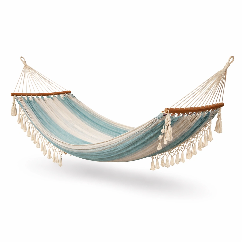 Detalles de diseño: Tejido a rayas, Sistema de suspensión con cuerdas, Diseño de flecos